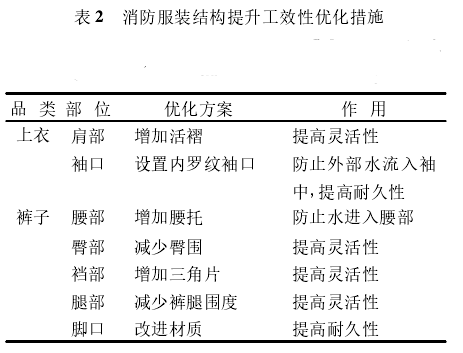 基于防護服裝功能設計模式,消防服結構優(yōu)化的目的主要包括加強防護性能和提升工效性能兩方面。