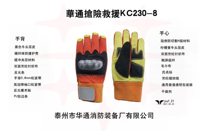 符合《消防員搶險(xiǎn)救援防護(hù)服裝試驗(yàn)大綱》標(biāo)準(zhǔn),提供國(guó)家級(jí)權(quán)威檢驗(yàn)機(jī)構(gòu)出具的檢測(cè)報(bào)告復(fù)印件或掃描件。手套五指分離式,在搶險(xiǎn)救援作業(yè)時(shí)對(duì)消防員手部和腕部提供保護(hù)。手背關(guān)節(jié)處采用碳纖維硬殼,具有防磕、撞設(shè)計(jì)。