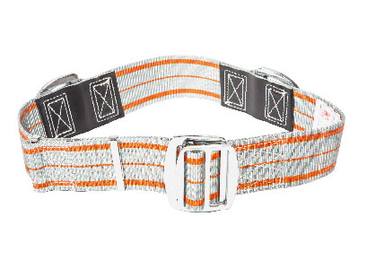 ·消防安全腰帶是一種緊扣于腰部的帶有必要金屬零件的織帶,用于承受人體重量以保護其安全,適用于消防員登梯作蚜口逃生自救。消防安全腰帶帶長連續(xù)可調(diào),由織帶、內(nèi)帶扣、外帶扣、環(huán)扣和兩個拉環(huán)等零部件構(gòu)成。消防安全腰帶的設(shè)計負荷為1.33N,其質(zhì)量不超過o.85kg??棊橐徽瑹o接縫,其寬度為{70±1)mm。具有靜負荷性能、抗沖擊性能、耐高溫性能以及金屬零件的耐腐蝕性能。