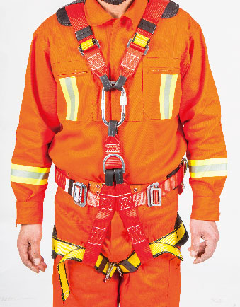 ·設計負荷為2.6KN,固定于腰部、大腿或臀部以下部位和上身肩部、胸部等部位,可適用于對他人進行救援,可以為分體或連體結構。III型消防安全帶由織帶、前部拉環(huán)、后背拉環(huán)、后背襯墊和帶扣等零部件構成,為全身式安全吊帶。