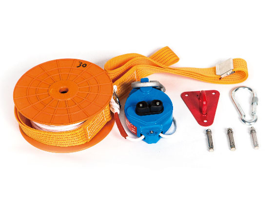 ·救生緩降器是一種可使人沿(隨)繩(帶)緩慢下降的逃生裝置。一般由掛鉤(或吊環(huán))吊帶、繩索及速度控制器等組成,它可有專(zhuān)用安裝器具安裝在建筑物窗口、陽(yáng)臺(tái)或樓房平頂?shù)忍?,也可安裝在舉高消防車(chē)上,營(yíng)救處于高層建筑物火災(zāi)中的受難人員。