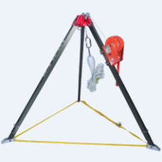 用于高處、懸崖及井下等救援作業(yè)。金屬框架,備有手搖式絞盤,手動(dòng)絞盤額定提升重量1600N,手搖力175N,繩索長度30米,質(zhì)量27.4kg。符合《救援三角架試驗(yàn)大綱》標(biāo)準(zhǔn)。