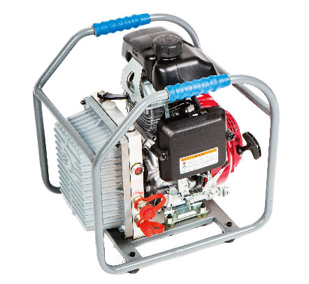 符合國家標(biāo)準(zhǔn)GB/T17906-1999《液壓破拆工具通用技術(shù)條件》,機(jī)動(dòng)泵的總質(zhì)量23.6kg,機(jī)動(dòng)泵對工具進(jìn)行密封性能試驗(yàn),工具閉合或全開狀態(tài),在63MPa條件下,應(yīng)無液壓油泄漏。機(jī)動(dòng)泵額定工作壓力63MPa,高壓流量0.4L/min,低壓工作壓力10 MPa,低壓流量1.3 L/min。