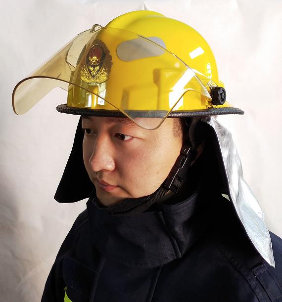 符合XF 44-2015《消防頭盔》標(biāo)準(zhǔn)要求。半盔設(shè)計(jì),用于頭部、面部及頸部的安全保護(hù),主要由帽殼、帽箍、帽托、緩沖層、下頦帶等組成,具備防砸、防尖銳物品沖擊、耐熱、耐燃燒、電絕緣等性能?;鹪措x開(kāi)帽殼后,帽內(nèi)火焰在5秒內(nèi)自熄。淺色透明面罩,經(jīng)高溫試驗(yàn),無(wú)變形及損壞現(xiàn)象。最大沖擊力:高溫≤3350N、低溫≤3400N、浸水≤3550N、輻射熱≤3300N。帽頂部:最大沖擊加速度≤145gn;帽前部:最大沖擊加速度≤340gn;加速度>150gn,其持續(xù)時(shí)間≤5ms;加速度>200gn,其持續(xù)時(shí)間≤2.5ms;帽側(cè)部:最大沖擊加速度≤360 gn;加速度>150gn,其持續(xù)時(shí)間≤5.5ms;加速度>200gn,其持續(xù)時(shí)間≤2.5ms;帽后部:最大沖擊加速度≤370gn;加速度>150gn,其持續(xù)時(shí)間≤5.5ms;加速度>200gn,其持續(xù)時(shí)間≤2.5ms。耐熱性能:帽殼不能觸及頭模,任何部件無(wú)被引燃或熔化。面罩:無(wú)明顯變形和損壞,帽箍調(diào)節(jié)裝置、下顎帶鎖緊裝置、附件和五金保持其原有功能。帽箍、帽托、緩沖層和下顎帶均無(wú)明顯變形和損壞。耐穿透性能:鋼錐不得穿透頭盔與頭模產(chǎn)生接觸。耐燃燒性能:火源離開(kāi)帽殼后,帽殼火焰在5s,內(nèi)自熄,并且不應(yīng)有火焰燒透到帽殼內(nèi)部的跡象。帽殼泄露電流≤1.1mA。下顎帶抗拉強(qiáng)度:下顎帶不會(huì)發(fā)生斷裂、連接件滑脫及搭扣松脫現(xiàn)象,延伸長(zhǎng)度≤18mm。側(cè)向剛性:帽殼最大變形≤20mm。卸載后殘余變形≤4mm。面罩:經(jīng)抗高速粒子沖擊試驗(yàn),不應(yīng)出現(xiàn)破碎現(xiàn)象。淺色透明面罩透光率≥75%。