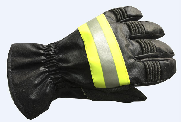 符合XF7-2004《消防手套》標(biāo)準(zhǔn)要求。主要用于手部防護(hù),采用外層、隔熱層、防水透氣層、襯里四層結(jié)構(gòu)。面料采用芳綸高性能阻燃纖維材料,具備阻燃、防水透氣、防靜電、舒適等性能。由外層、防水層、隔熱層、襯里組成。手背縫合有寬度為不小于50mm的360°反光標(biāo)志帶。整體熱防護(hù)性能:TPP≥30cal/cm2。耐磨性能>2000,割破力>15.0N,撕破強(qiáng)力≥155N、刺穿力≥75N,穿戴時間≤2s。防水性能:手套連續(xù)浸水 24H無滲漏靈巧性能:30S內(nèi)3次拾取鋼棒直徑8mm;握緊性能:拉重力比≥96%;外層面料材料:藏青色抗結(jié)冰斜紋布。防水層材料:TPU低透乳白防水袋。隔熱層面料材料:芳綸氈。