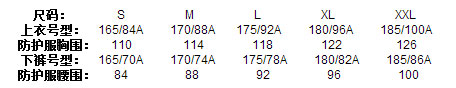 5、表1 消防員滅火防護(hù)服規(guī)格表